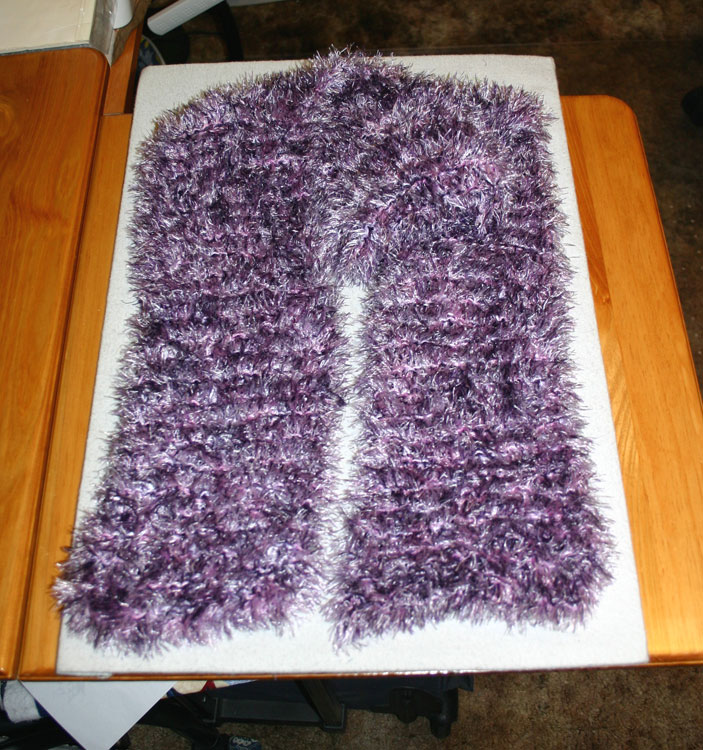I picked out the binding and unraveled it. There are about four skeins of yarn. I'm going to re-knit it narrower. I don't need the warmth, but I love the color and feel. Garage sales are full of potential. Oh... and I paid 12 cents for it!
